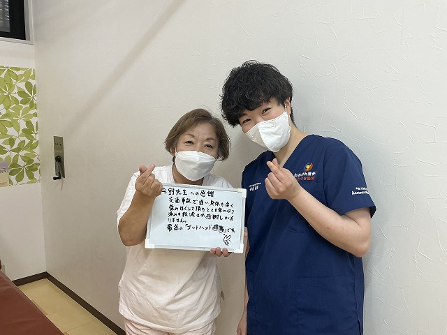 交通事故で通い、身体を良く揉みほぐして頂き、とても楽になり痛みも軽減され、感謝しかありません。